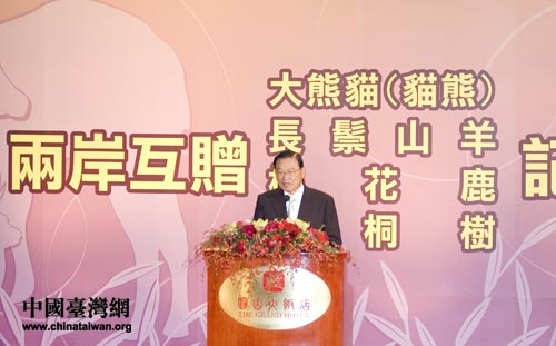 兩岸互贈珍稀動植物記者會今天在臺北舉行。這是江丙坤在致辭。中國臺灣網(wǎng) 田云鵬攝