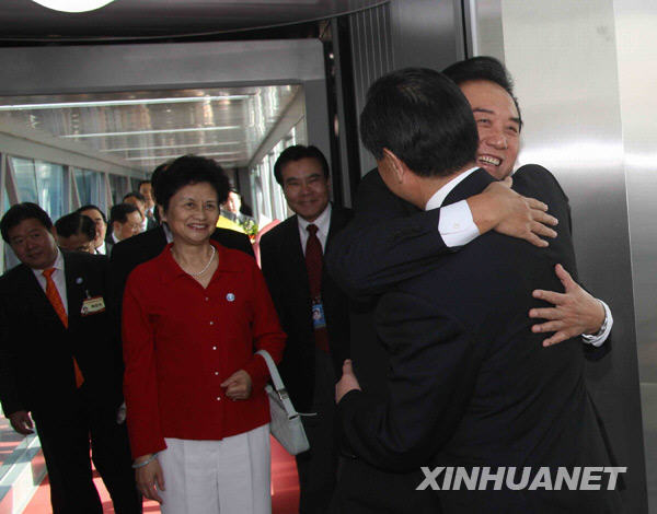 11月7日,海協(xié)會會長陳云林一行結束訪臺行程,于13時50分許乘機回到北京。中臺辦、國臺辦主任王毅到機場迎接。新華社記者 汪永基 攝