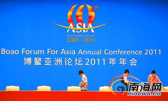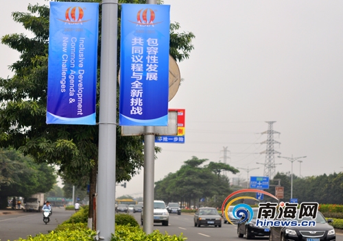 2011博鰲亞洲論壇年會和金磚國家領(lǐng)導(dǎo)人第三次會晤即將在海南省舉行。6日上午,為迎接盛會的召開及來自世界各地的嘉賓,海口的龍昆路、海府路、國興大道等主要路段均已掛上標(biāo)語、橫幅等營造盛會氣氛。