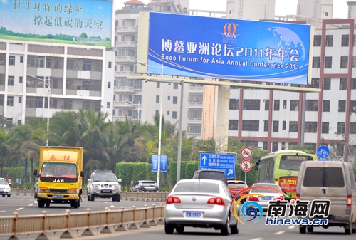豎立在海南省海口市海府路的大廣告牌提示人們,離2011年博鰲亞洲論壇的日期越來越近。南海網(wǎng)見習(xí)記者 秦彥 攝
