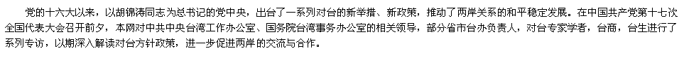 黨的十六大以來對臺工作取得新的成果