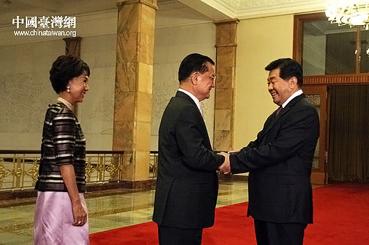 7月27日下午,中共中央政治局常委、全國(guó)政協(xié)主席賈慶林在北京人民大會(huì)堂北京廳會(huì)見了來訪的中國(guó)國(guó)民黨榮譽(yù)主席連戰(zhàn)一行。(中國(guó)臺(tái)灣網(wǎng) 鐘寶華 攝)