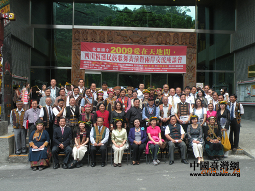 下午,交流團與臺灣原住民團隊進行了聯(lián)歡,臺灣原住民14個族群舞蹈款款而出,踏歌起舞。生動地表現(xiàn)了原住民獨特的勞動、生活情形;四川藏、羌、彝族歌舞各具特色、奔放自如,展現(xiàn)了一幅幅馳騁草原、狂歡火把節(jié)的多彩畫面。