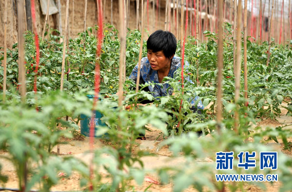 6月25日,山西聞喜縣上鎮(zhèn)村村民在蔬菜大棚內(nèi)勞作。