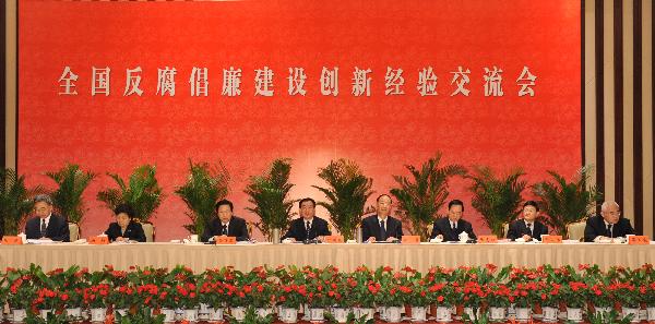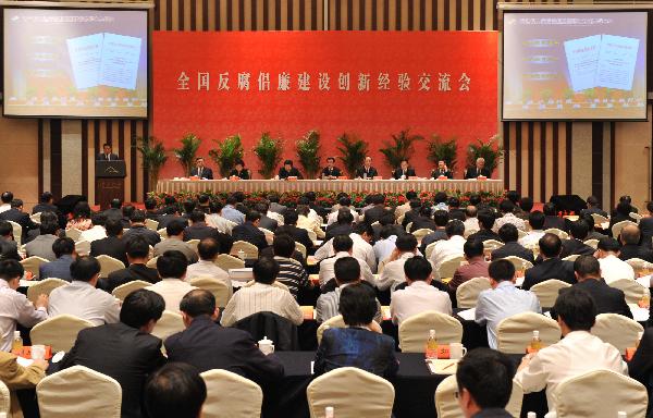 5月18日,中央紀(jì)委監(jiān)察部在南京市召開(kāi)全國(guó)反腐倡廉建設(shè)創(chuàng)新經(jīng)驗(yàn)交流會(huì),中共中央政治局常委、中央紀(jì)委書(shū)記賀國(guó)強(qiáng)出席會(huì)議并講話(huà)! ⌒氯A社記者黃敬文攝