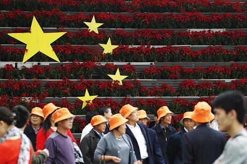 9月29日,世博軸上國旗招展。國慶節(jié)臨近,世博園在國旗、鮮花、中國結(jié)等眾多節(jié)日元素的妝扮下,處處洋溢著喜慶的氣氛。新華社記者 裴鑫 攝