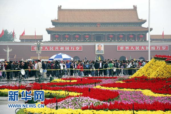 10月2日,游客在北京天安門廣場游覽。新華社發(fā)(樊甲山 攝)