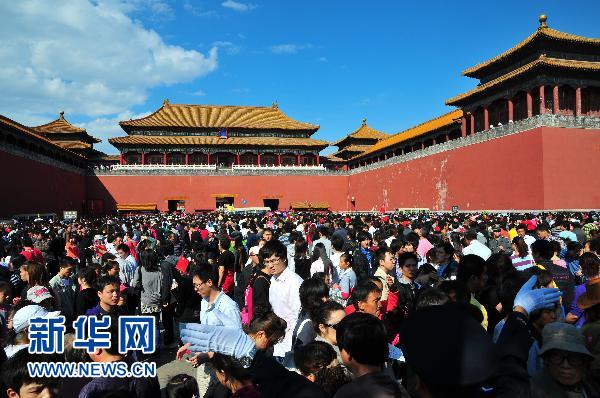 10月2日,北京故宮北門廣場游人如織。新華社發(fā)
