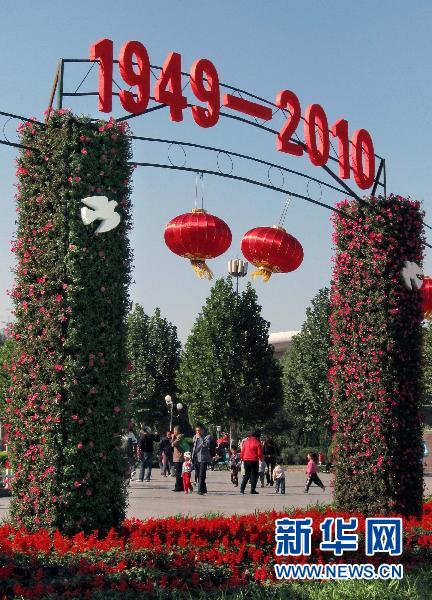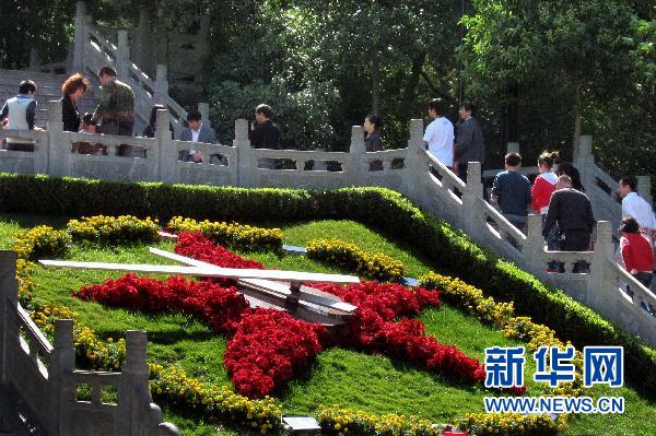 這是鄭州一個休閑廣場上的一座“國慶”主題花壇(10月3日攝)。國慶長假期間,在河南省鄭州市的休閑廣場、街心花園和道路兩旁,由500萬盆各色鮮花組成的花壇、花廊、花圃,猶如一幅幅優(yōu)美、和諧的立體風(fēng)景畫,扮靚了節(jié)日的鄭州。新華社記者王頌攝