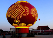 天安門(mén)廣場(chǎng)立巨型紅燈籠迎國(guó)慶