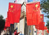 濟(jì)南“紅旗飄飄”迎國(guó)慶