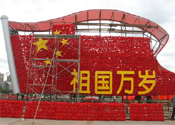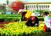 天安門(mén)廣場(chǎng)擺放鮮花迎國(guó)慶