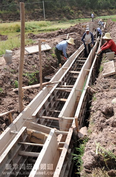 這是云南省楚雄彝族自治州姚安縣太平鎮(zhèn)白石地村的村民在修建灌溉水渠(4月22日攝)。