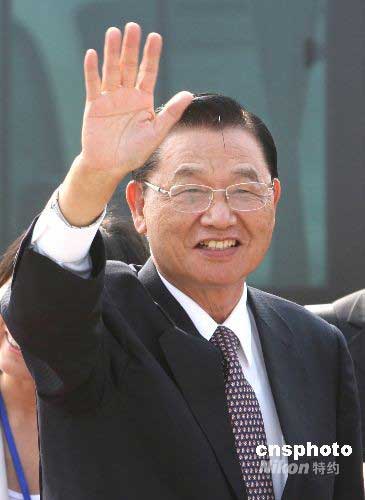 江丙坤在機場向中外媒體揮手致意