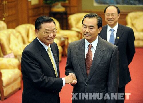 6月12日,中臺(tái)辦、國臺(tái)辦主任王毅在北京釣魚臺(tái)國賓館會(huì)見;鶗(huì)董事長江丙坤率領(lǐng)的海基會(huì)代表團(tuán)。 新華社記者 李曉果 攝