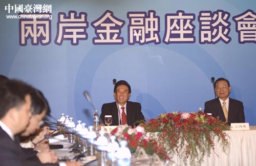 中國臺灣網11月5日臺北消息 由海協(xié)會、;鶗餐鞒,兩岸金融界主管部門及業(yè)界人士參加的兩岸金融座談會今天上午在臺北圓山飯店舉行。海協(xié)會會長陳云林、;鶗麻L江丙坤出席并致辭。