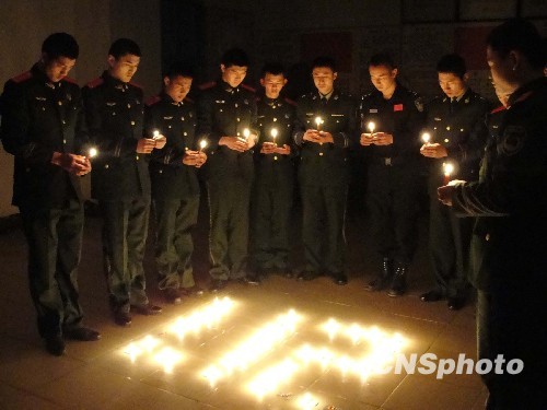 1月19日,在海地地震中遇難的八名中國籍維和人員遺體運返回國。圖為18日晚福建平潭邊防官兵自發(fā)組織對死難的戰(zhàn)友進行默哀和對海地正在受難的人們祈禱祝福。中新社發(fā) 黃煜情 攝