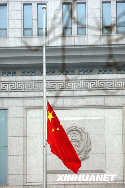 1月19日,根據(jù)國旗法相關(guān)規(guī)定,為悼念八位海地地震遇難中國維和警察,公安部下半旗志哀。 新華社記者唐師曾攝