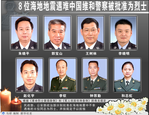 圖表:8位海地地震遇難中國維和警察被批準(zhǔn)為烈士 新華社發(fā)