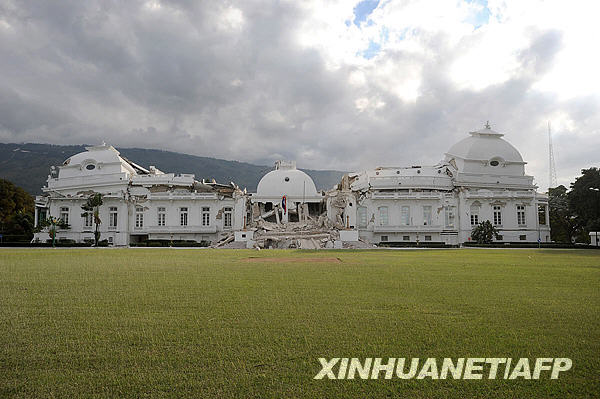 1月13日,位于海地首都太子港的總統(tǒng)府在地震中遭到嚴(yán)重?fù)p毀。新華社/法新