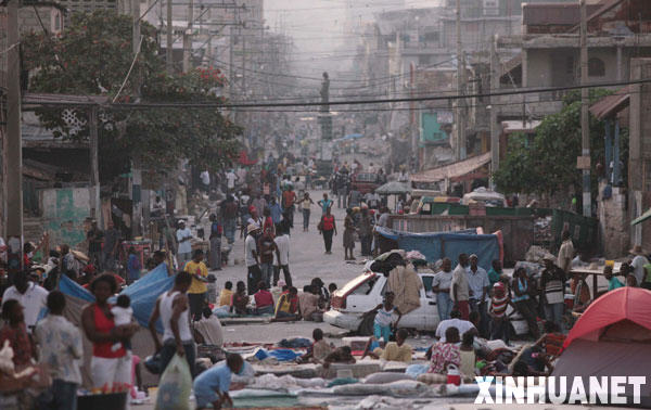 1月24日,在海地首都太子港,由于擔心余震發(fā)生,許多海地災民仍在街頭露宿。海地政府日前已經(jīng)宣布停止人員搜救行動,國際社會正繼續(xù)積極援助海地。新華社發(fā)(烏巴爾多·岡薩雷斯攝)
