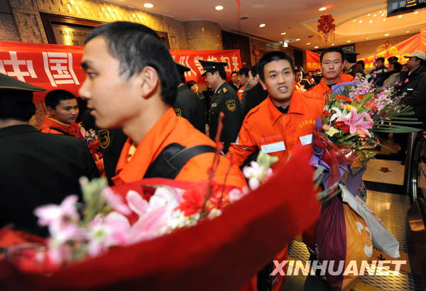 當(dāng)日,中國國際救援隊圓滿完成海地震后搜救和醫(yī)療救治任務(wù)返回北京。新華社記者王建華攝