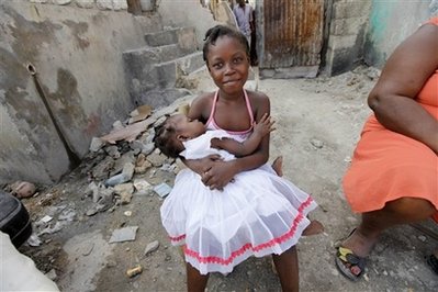 一名懷抱嬰兒的海地少女。