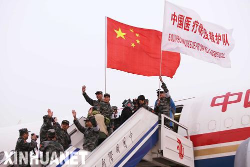 當(dāng)日,由中國人民解放軍醫(yī)護(hù)人員和管理人員組成的中國醫(yī)療防疫救護(hù)隊(duì),乘坐民航包機(jī)飛離北京,前往海地執(zhí)行人道主義救援任務(wù)。新華社記者 陳建力 攝