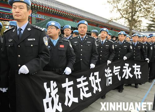 1月20日,向海地地震遇難中國(guó)維和警察遺體送別儀式在北京八寶山革命公墓禮堂舉行。這是曾經(jīng)參加過(guò)海外維和任務(wù)的警察準(zhǔn)備進(jìn)入禮堂送別戰(zhàn)友。新華社記者謝環(huán)馳攝