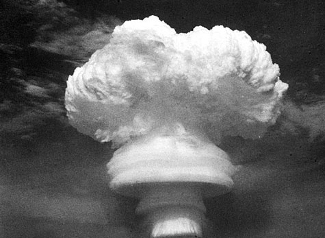 氫彈爆炸時(shí),作為引爆裝置的原子彈首先爆炸,產(chǎn)生數(shù)千萬(wàn)度高溫,促使氘氚等輕核急劇聚變,放出巨大能量,形成更猛烈的爆炸。