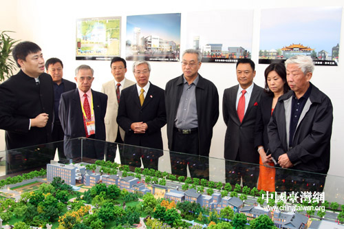 10月2日,全國臺灣研究會副會長孫曉郁(右一)、海協(xié)會副會長張銘清(右四)等有關(guān)部門負責人出席北京臺灣街“五桂樓”奠基儀式,并參觀北京臺灣街沙盤,聽取有關(guān)介紹。。ㄖ袊_灣網(wǎng) 田云鵬 攝)