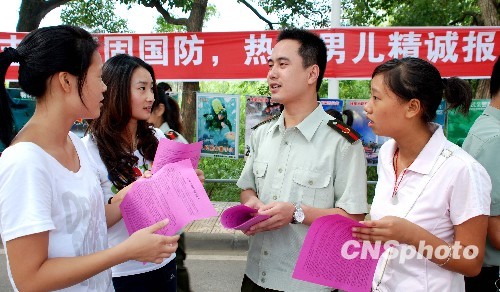 據(jù)總參動員部有關部門領導介紹,今年高校應屆畢業(yè)生人數(shù)約為610萬人,其中已確定為預征對象的近13萬人。我國兵員征集對象主體調(diào)整始于2008年。當年6月,總參謀部、總政治部和教育部、公安部、民政部聯(lián)合下發(fā)通知,宣布將征集對象主體從農(nóng)村青年、城鎮(zhèn)待業(yè)青年調(diào)整為全日制高中以上層次各級各類學校應屆畢業(yè)生。當年底,3.9萬余名高校畢業(yè)生攜筆從戎。