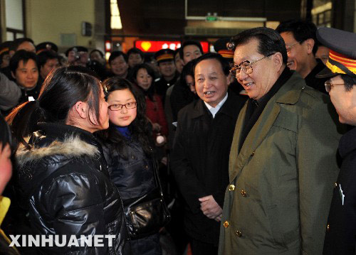 這是1月30日,李長(zhǎng)春在湖北武漢漢口火車站看望慰問(wèn)旅客。