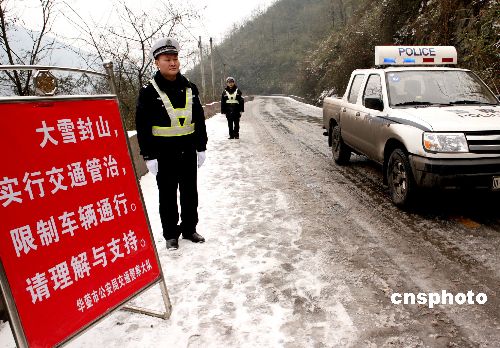 1月30日,在四川省廣安市華鎣山區(qū)一條被冰雪覆蓋的公路上,一塊寫著大雪封山等字樣的標(biāo)牌顯得格外醒目。自1月12日以來,廣安市持續(xù)出現(xiàn)歷史罕見的低溫雨雪天氣,大部分地區(qū)出現(xiàn)降雪,華鎣山區(qū)積雪厚度普遍達(dá)300至400毫米。持續(xù)低溫雨雪天氣給農(nóng)業(yè)生產(chǎn)、人民生活、交通道路、電力供應(yīng)等帶來了較重影響。 中新社發(fā) 邱海鷹 攝