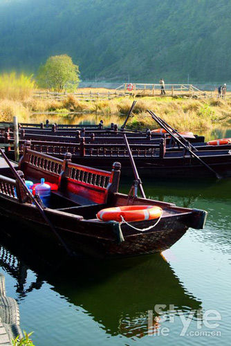 距縣城十來公里左右的北海濕地很特別,屬高原火山堰塞湖生態(tài)系統(tǒng)。我們所見到的成片成片的草塊都是漂浮在水面上。倘若你以為水很淺,草生長在水底泥上,那就錯了,實際上成片成片的水草的根須經(jīng)過千萬年的生死串結(jié)而成,厚度大約在1米,被稱為“草排”,下面水深足有十幾米。當?shù)厝艘郧敖?jīng)常把分開的一小片草排當船來劃,捕魚蝦。如今為了環(huán)保及安全,濕地被保護起來,草排也是分片對游人開放,人工搭起的木板平臺橋一直延伸到濕地中,供游客穿行于草地上,欣賞周圍美景。不過乘坐游船深入漂浮的草排中,穿著雨靴體驗一把“踩”草排的經(jīng)歷,卻是最讓人津津樂道的事兒。