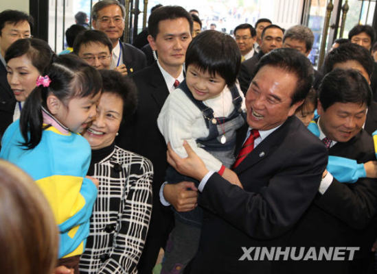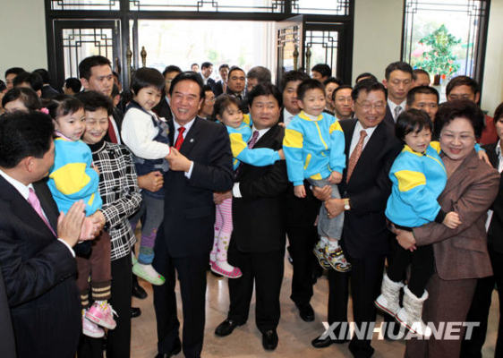 12月23日,海協(xié)會會長陳云林與夫人在;鶗麻L江丙坤夫婦的陪同下來到臺中縣的一所兒童家園,看望在這里生活的孩子。新華社發(fā)(王濤攝)