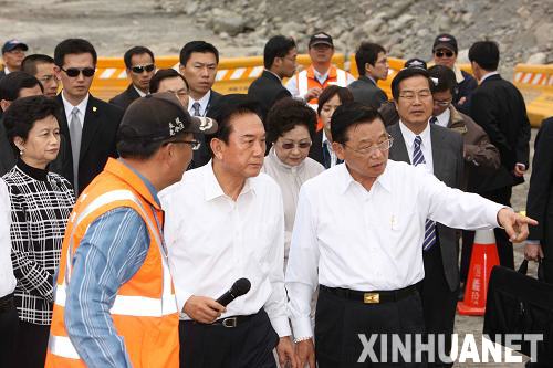 12月24日,海協(xié)會(huì)會(huì)長(zhǎng)陳云林(前中)率海協(xié)會(huì)協(xié)商代表團(tuán)部分成員赴南投縣水里鄉(xiāng)新山村,考察“八八水災(zāi)”災(zāi)區(qū)。;鶗(huì)董事長(zhǎng)江丙坤、南投縣縣長(zhǎng)李朝卿陪同考察。新華社記者 袁滿 攝