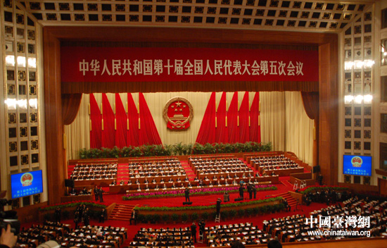 中國臺灣網(wǎng)3月16日北京消息 今天上午10時,第十屆全國人民代表大會第五次會議在人民大會堂舉行閉幕會議。(李艷波)
