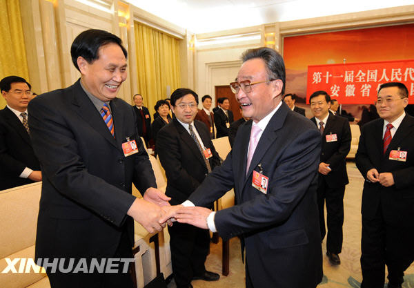 3月5日,中共中央政治局常委、全國人大常委會委員長吳邦國參加十一屆全國人大二次會議安徽代表團(tuán)的審議。新華社記者劉建生攝