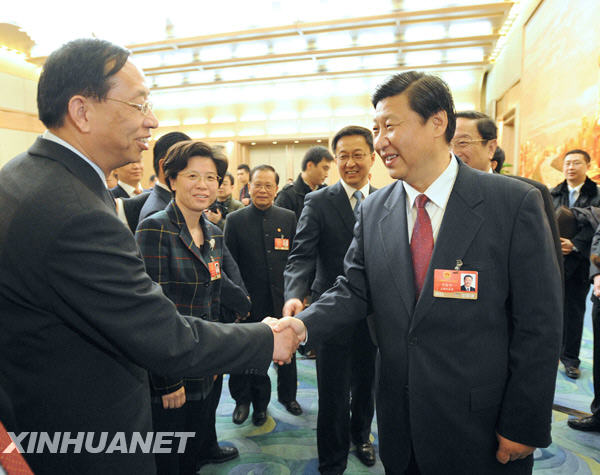 3月5日,中共中央政治局常委、國家副主席習(xí)近平參加十一屆全國人大二次會議上海代表團(tuán)的審議。新華社記者馬占成攝
