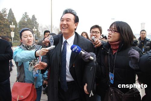 3月3日下午,海峽兩岸關(guān)系協(xié)會(huì)會(huì)長(zhǎng)陳云林在人民大會(huì)堂前接受媒體采訪。 中新社發(fā) 韓海冰 攝