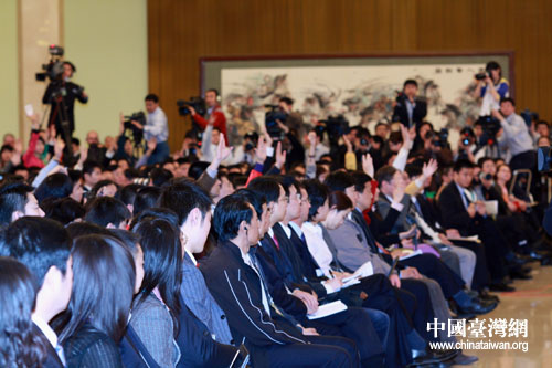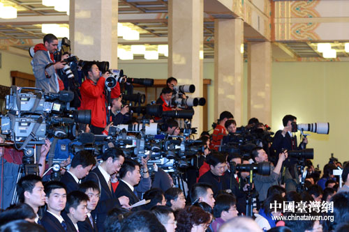 中國(guó)臺(tái)灣網(wǎng)3月13日北京消息 今天上午,十一屆全國(guó)人大二次會(huì)議在北京人民大會(huì)堂閉幕。閉幕會(huì)后,國(guó)務(wù)院總理溫家寶在人民大會(huì)堂與中外記者見面,并回答記者提問。(圖文/鐘寶華)