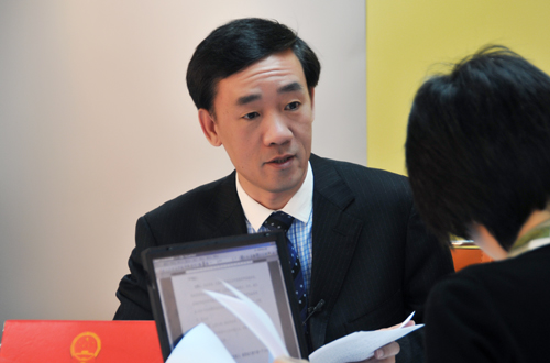 2010年3月7日10時(shí),財(cái)政部新聞發(fā)言人、辦公廳主任戴柏華接受中國政府網(wǎng)專訪,解讀《關(guān)于2009年中央和地方預(yù)算執(zhí)行情況與2010年中央和地方預(yù)算草案的報(bào)告》,并回答網(wǎng)民提問。圖為戴柏華回答網(wǎng)友提問。中國政府網(wǎng) 陳杰攝