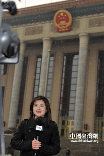 中央電視臺(tái)記者張泉靈一大早就到了人民大會(huì)堂前做報(bào)道!。ㄖ袊_(tái)灣網(wǎng)發(fā) 肖春陽、劉洋攝)