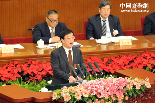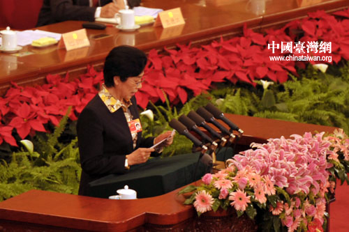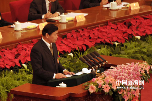 宋曉梧委員在大會上作《調(diào)整收入分配結(jié)構(gòu),加快經(jīng)濟(jì)發(fā)展方式轉(zhuǎn)變》的發(fā)言!(中國臺灣網(wǎng)發(fā) 肖春陽、劉洋攝)