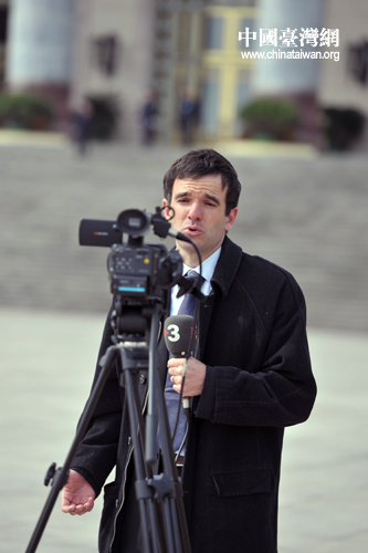 來自西班牙加泰羅尼亞電視臺的記者魏森一身兼兩職。 (中國臺灣網(wǎng)發(fā) 肖春陽、劉洋攝)
