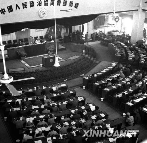 這是中國(guó)人民政治協(xié)商會(huì)議第一屆全體會(huì)議會(huì)場(chǎng)。1949年9月,中國(guó)人民政治協(xié)商會(huì)議第一屆全體會(huì)議通過(guò)了《中國(guó)人民政治協(xié)商會(huì)議共同綱領(lǐng)》。新華社發(fā)