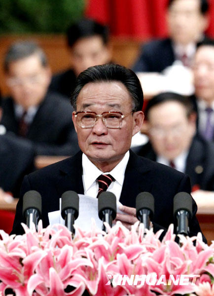 3月9日,十一屆全國人大三次會議在北京人民大會堂舉行第三次全體會議。全國人民代表大會常務委員會委員長吳邦國作全國人民代表大會常務委員會工作報告。 新華社記者劉建生攝