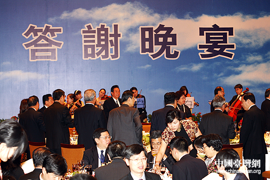 海協(xié)會(huì)長(zhǎng)會(huì)長(zhǎng)陳云林出席;鶗(huì)舉行的答謝晚宴。(中國(guó)臺(tái)灣網(wǎng) 鐘寶華 攝)