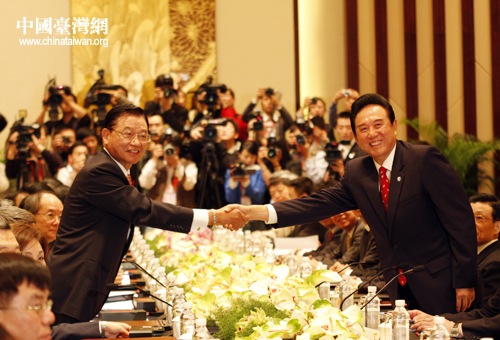 中國(guó)臺(tái)灣網(wǎng)4月26日南京消息 海峽兩岸關(guān)系協(xié)會(huì)會(huì)長(zhǎng)陳云林與海峽交流基金會(huì)董事長(zhǎng)江丙坤第三次會(huì)談今日上午9時(shí)在南京紫金山莊正式舉行。